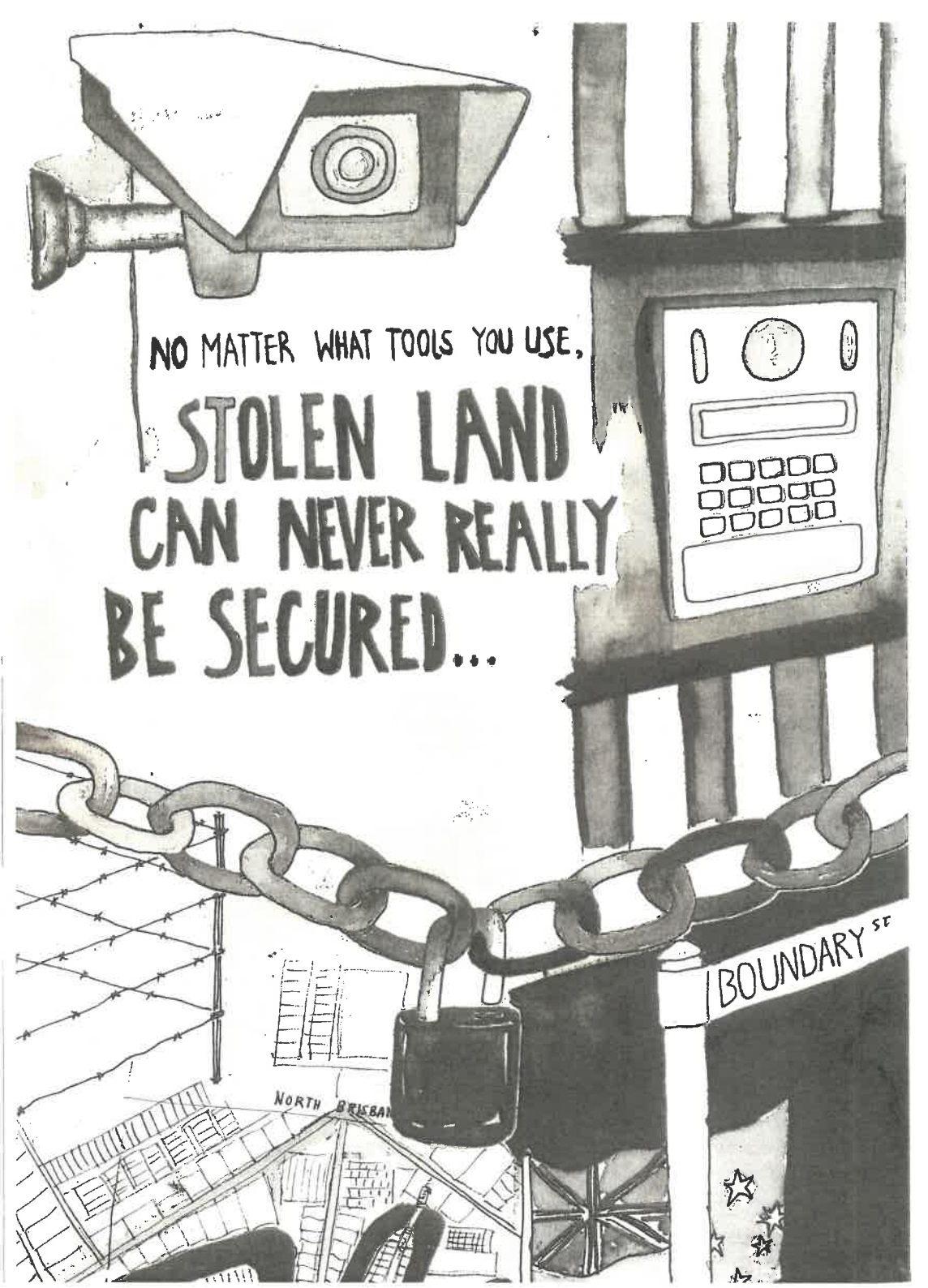 A mid-length zine featuring a visual essay and an excerpt from a PhD thesis titled “Nothing’s Changed, Everything’s Different”: Colonial Surveillance & Liberal Reform in Queensland. The zine offers an introduction to the idea of colonial surveillance and its relationship to racial capitalism, European imperialism, heteropatriarchy and ableism. It introduces key concepts from surveillance studies to understand the specific formation of surveillance as a tool of colonisation.